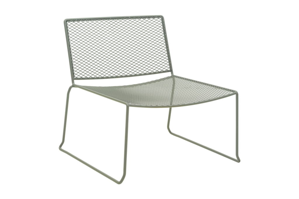 Fåtöljen har en stilren och grafisk design med sträckmetallmönster som inte bara ger ett modernt utseende utan också gör den mycket hållbar tack vare den dubbla pulverlacken. Förhöj komforten med tillhörande dyna Frisk för en fulländad upplevelse.