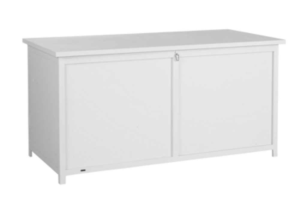 Stilren och funktionell förvaringslåda i slitstark aluminium med smidig gasfjäder och låsfunktion.