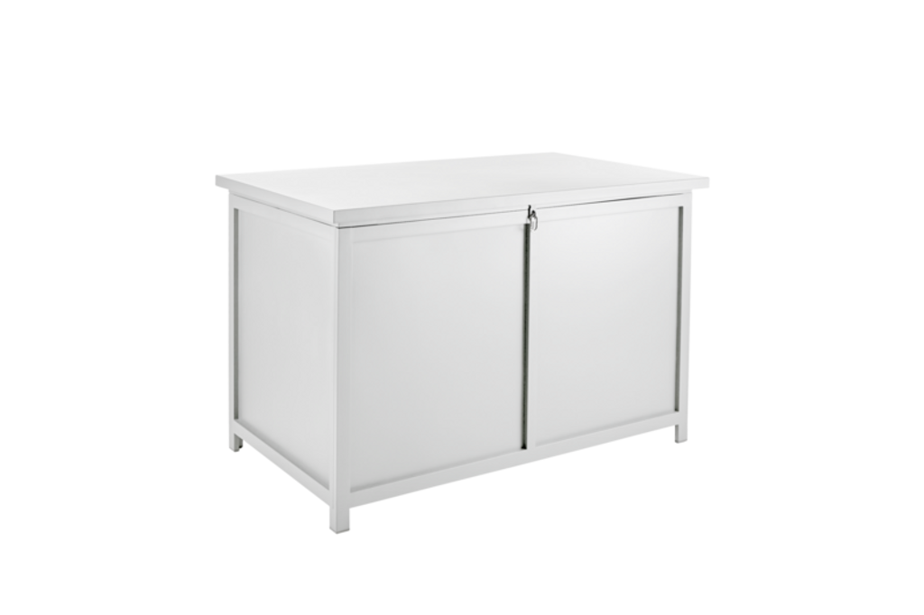 Designad med ett kraftigt lock och utrustad med en smidig gasfjäder, öppnas och stängs lådan enkelt och smidigt. Dessutom kan den användas som en extra avställningsyta. Lådan har en praktisk låsfunktion för extra säkerhet, där hänglås köps separat.