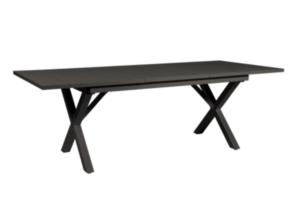 Upptäck Brafab Hillmond Förlängningsbart Bord, det ultimata valet för dina stora utomhusmiddagar. Detta eleganta bord är tillverkat av hållbar, pulverlackerad aluminium i en sofistikerad svart färg. Bordet mäter 100x160 cm och kan enkelt förlängas till 220 cm, vilket ger gott om plats för familj och vänner.