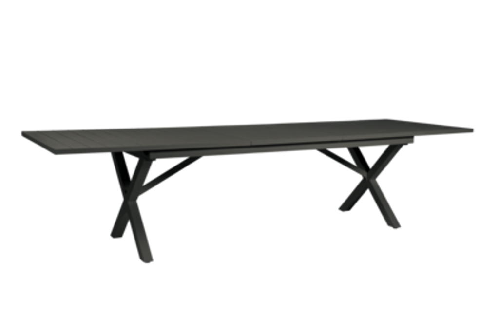 Elegant, underhållsfritt och utdragbart bord i pulverlackerad aluminium för utomhusbruk. Perfekt för större sällskap.
