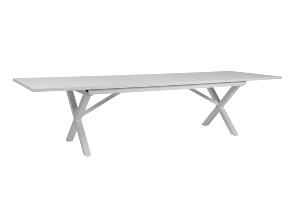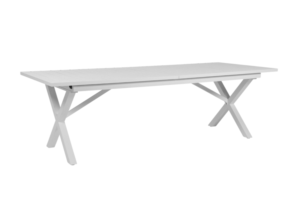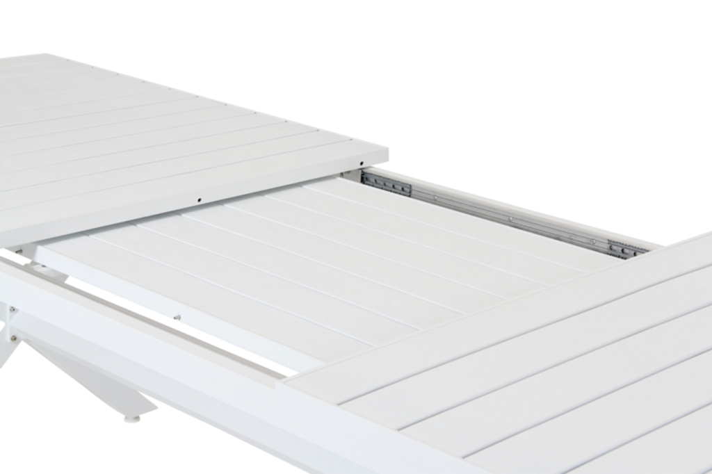 Upptäck Brafab Hillmond, ett elegant och funktionellt utdragbart matbord designat för att klara av utomhusmiljöer med stil. Denna modell mäter 100x240-310 cm och är tillverkad av slitstark, vit pulverlackerad aluminium, vilket garanterar lång livslängd och minimal skötsel.