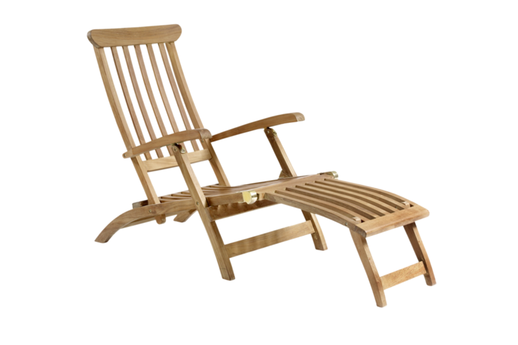 Elegant däckstol i standardteak, perfekt för avkoppling i trädgården med tidlös design och stabil konstruktion.