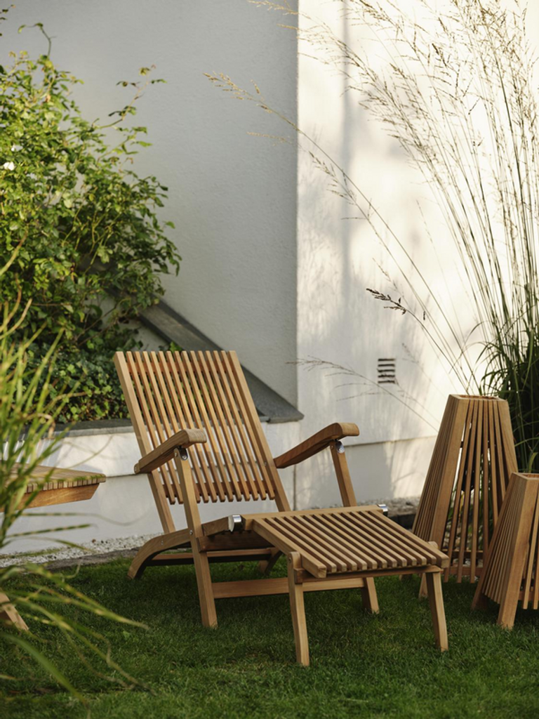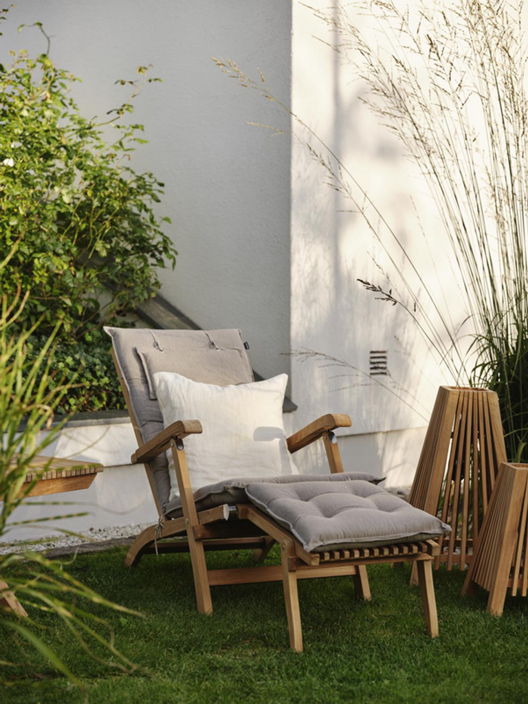 Placera gärna denna däckstol i trädgården eller på terrassen och njut av den naturliga teakens varma ton som harmonierar med omgivningen. Stolen kan enkelt kompletteras med en mjuk dyna för extra komfort, som visas i inspirationsbilden.