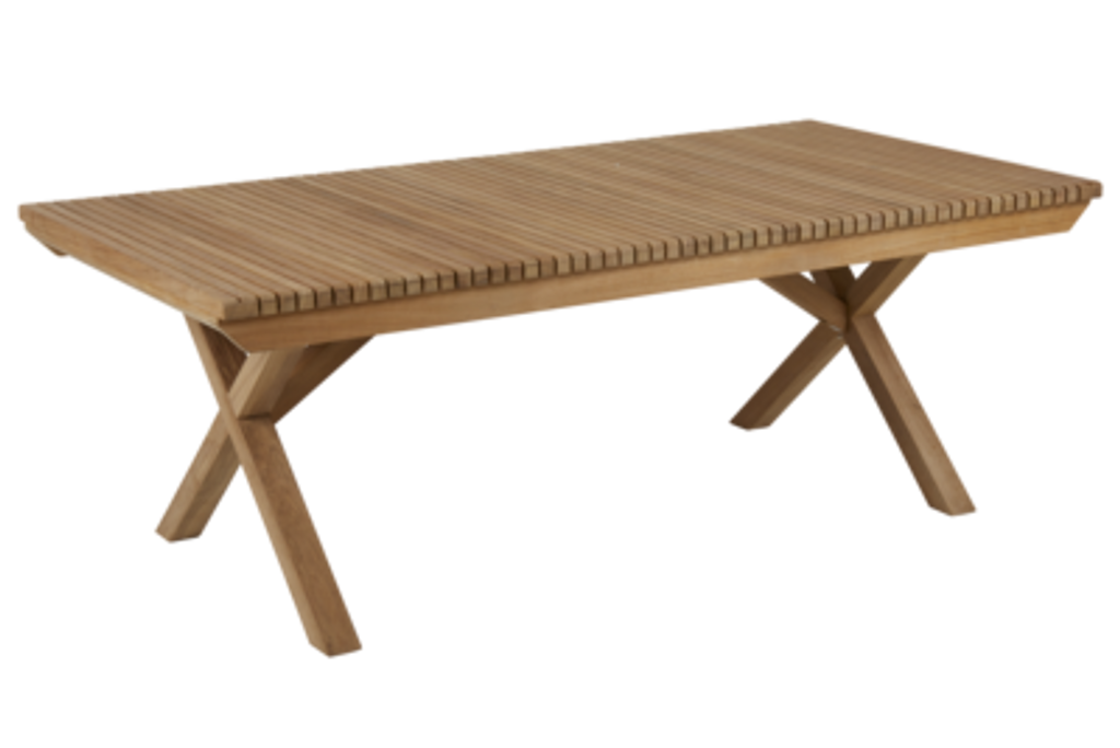 Utforska Brafab Julita soffbord, ett mästerverk i teak som kombinerar skandinavisk elegans med modern funktionalitet. Bordets raka och eleganta design gör det till en perfekt mittpunkt för din uteplats. Tillverkat av högkvalitativ teak i en naturlig nyans, erbjuder detta bord både stil och hållbarhet.