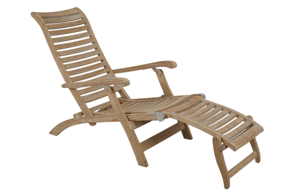Den naturliga teakkonstruktionen ger en varm och inbjudande känsla, medan den släta, rundade finishen säkerställer en bekväm upplevelse. Den justerbara ryggen ger möjligheten att anpassa sittkomforten, och de breda armstöden erbjuder extra stöd. Med en bredd på 60 cm, ett djup på 159 cm och en höjd på 85 cm, är denna stol både rymlig och bekväm.