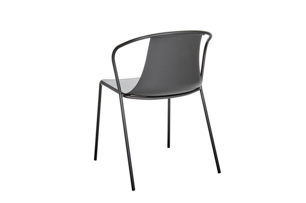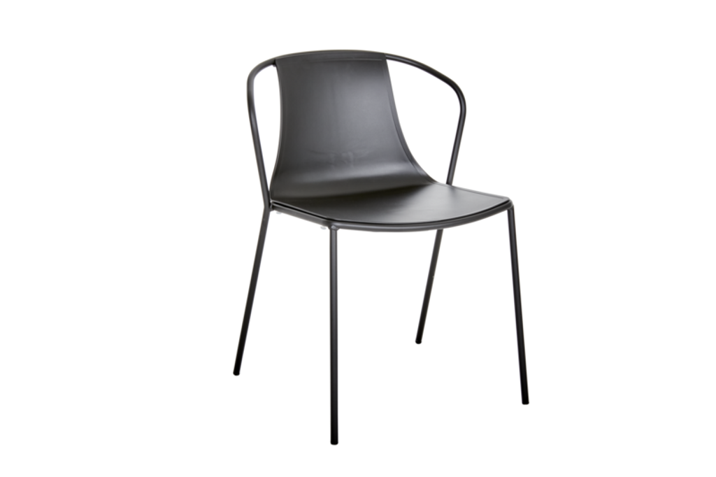Stolen har en elegant svart yta som passar sömlöst in i alla utomhusmiljöer. Tillverkad med högkvalitativa material, är den designad för att stå emot olika väderförhållanden och behålla sitt stilrena utseende över tid.