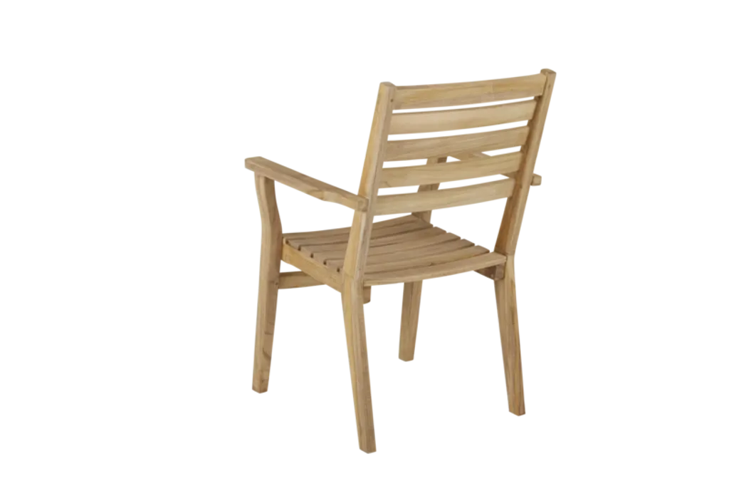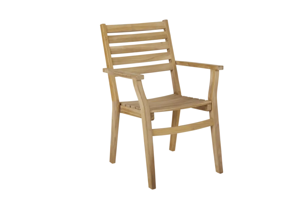 Stilren karmstol i massiv teak med tidlös design och bekväma armstöd. Perfekt för trädgården eller altanen.