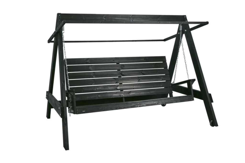 Elegant hammock i svart FSC-godkänd furu, perfekt för trädgården. Mått: 219x130x158 cm.