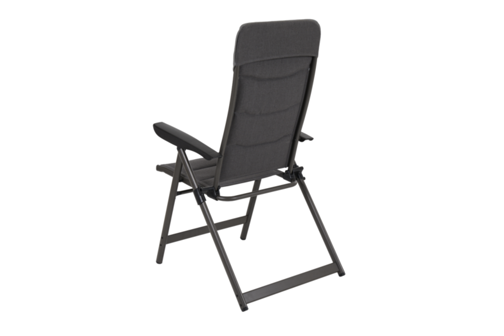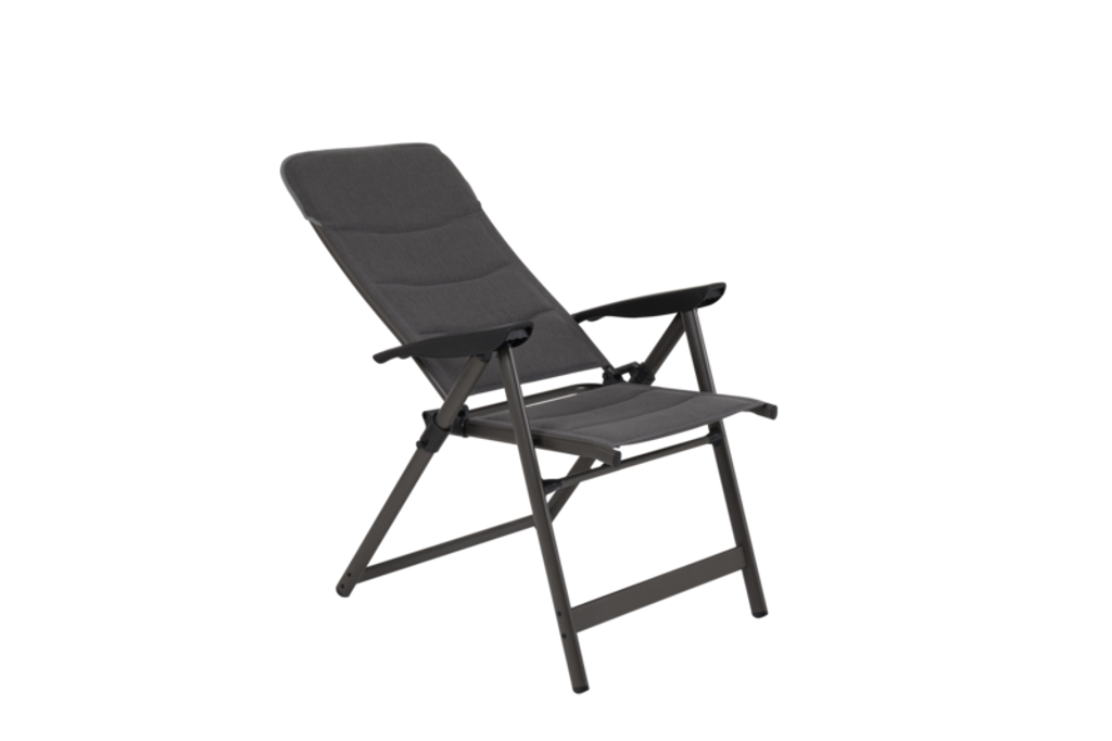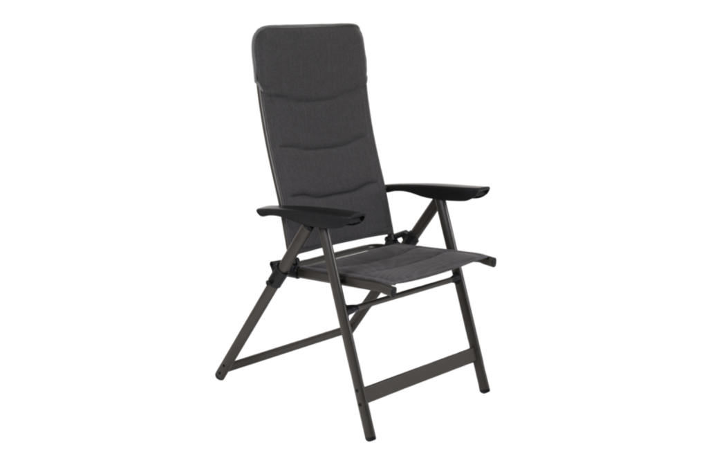Hopfällbar campingstol i antracit från Brafab, tillverkad i tålig lackerad aluminium för optimal komfort och hållbarhet.