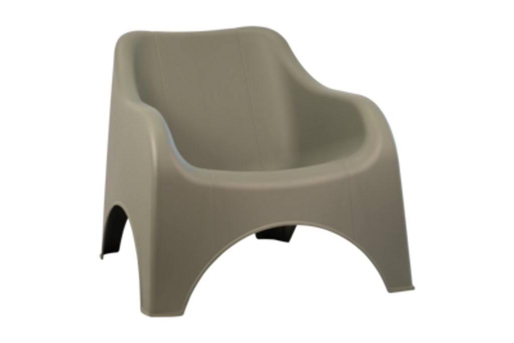 Brafab Kumo loungefåtölj med mjuka linjer i slitstark grön plast, idealisk för en modern utemiljö.