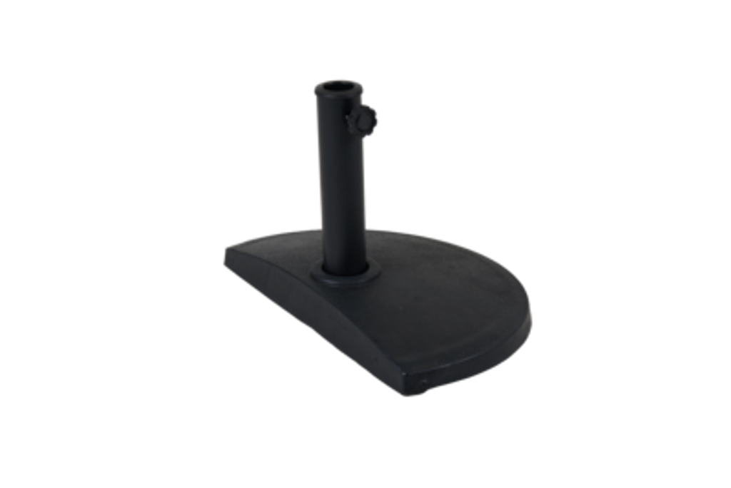 Stabil och slitstark parasollfot i svart plast, perfekt för Cambre "halvt" parasollet.