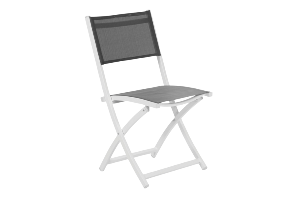Stilren och flexibel fällstol i vit och grå aluminiumdesign, perfekt för både mat- och soffgrupp.