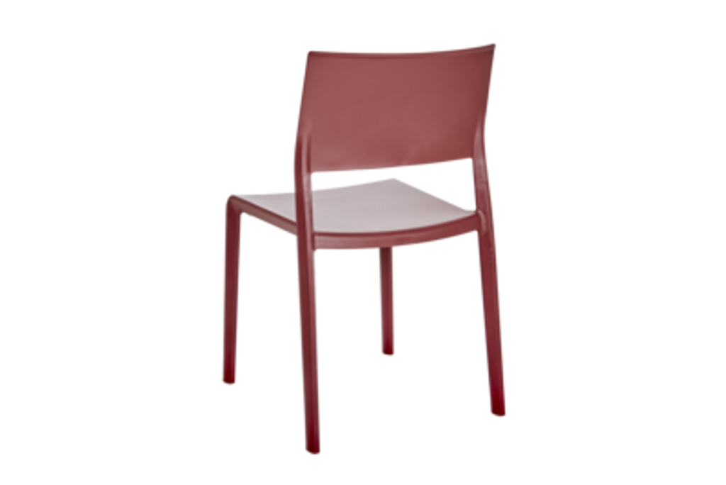 Stilfull och funktionell stapelbar matstol i bordeaux plast för inomhus- och utomhusbruk.