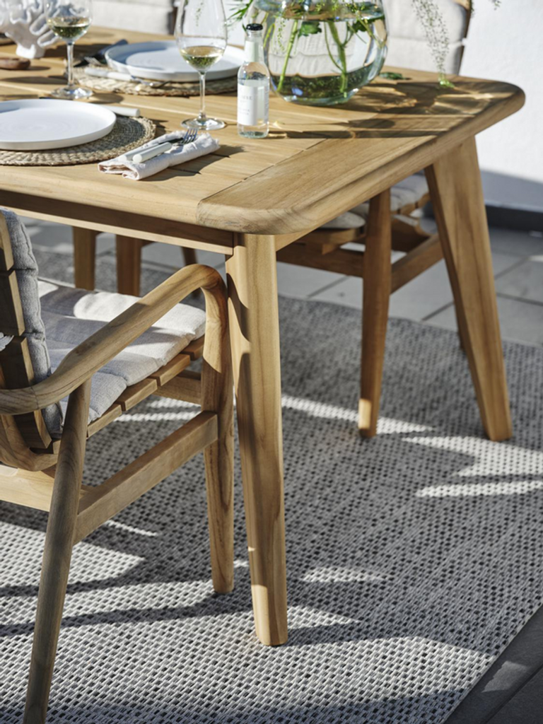 Tack vare sin robusta konstruktion och eleganta design, är Lilja ett utmärkt val för alla utomhusmiljöer. Teaken ger en varm och inbjudande atmosfär, samtidigt som den är motståndskraftig mot väder och vind. Oavsett om du planerar en fest eller en lugn middag, är detta bord ett perfekt komplement till din inredning.