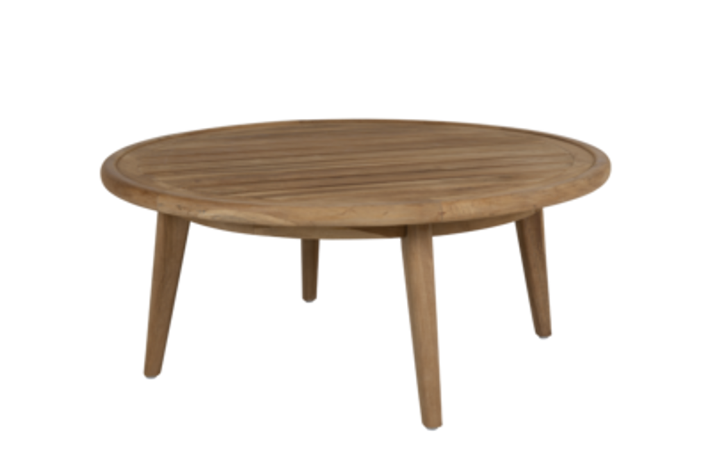 Elegant soffbord i robust teak med organisk design, perfekt för både avkoppling och måltider.