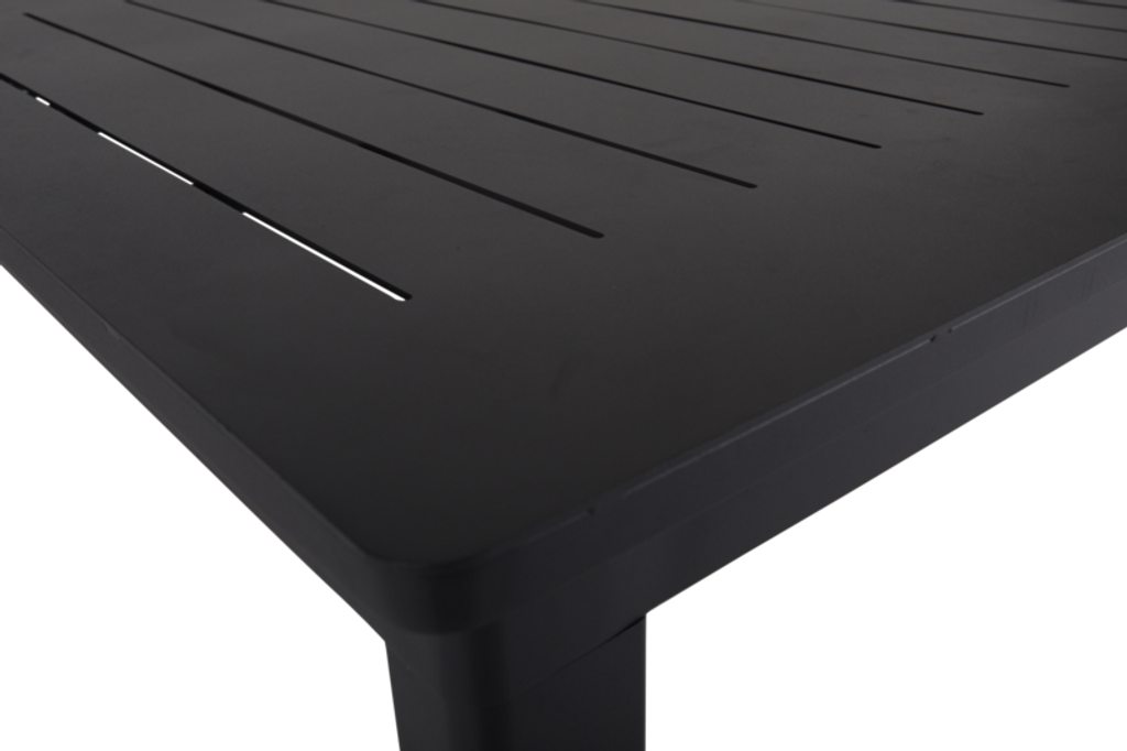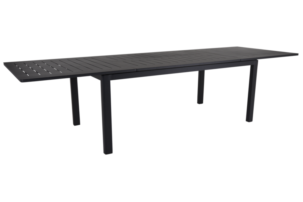 Upptäck Brafab Lomma förlängningsbart matbord, en perfekt kombination av stil och funktionalitet för din utomhusmiljö. Tillverkat i svart aluminium, garanterar detta matbord både lätthet och hållbarhet, vilket gör det enkelt att hantera och motståndskraftigt mot väder och vind.