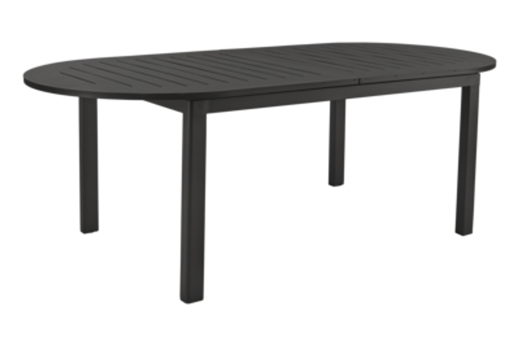 Uppgradera din uteplats med det stilrena Brafab Lomma matbordet, som mäter 110x220-280 cm. Detta eleganta bord är perfekt för både vardag och större middagssällskap tack vare sin smarta förlängningsfunktion från 220 cm till 280 cm. Bordets ovala form och svarta aluminiumkonstruktion ger en modern och sofistikerad känsla som passar perfekt i trädgården eller på uteplatsen.
