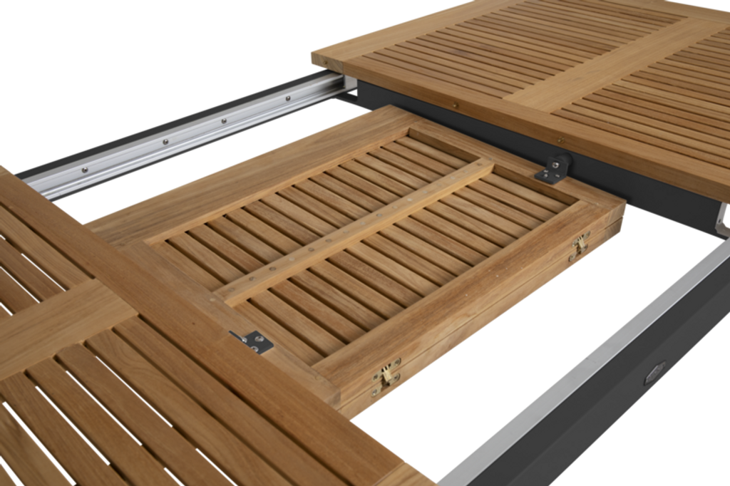 - Förlängningsbart: Butterflyskiva i teak gör det enkelt att anpassa bordets storlek.