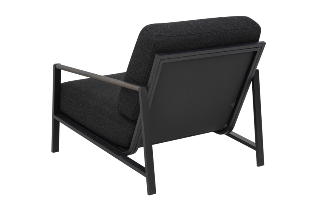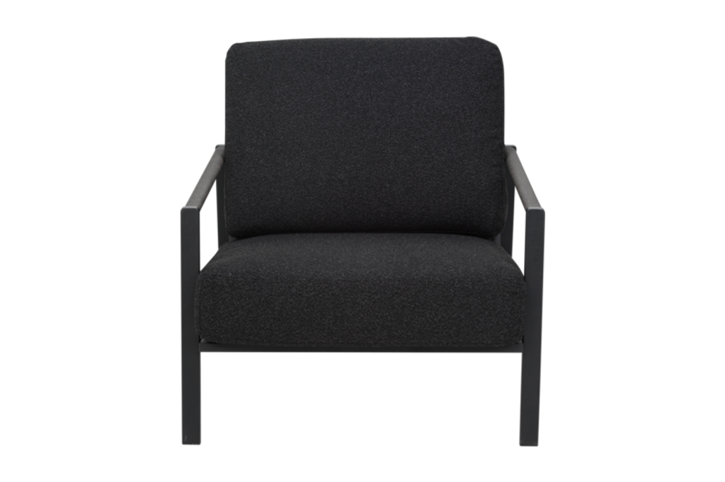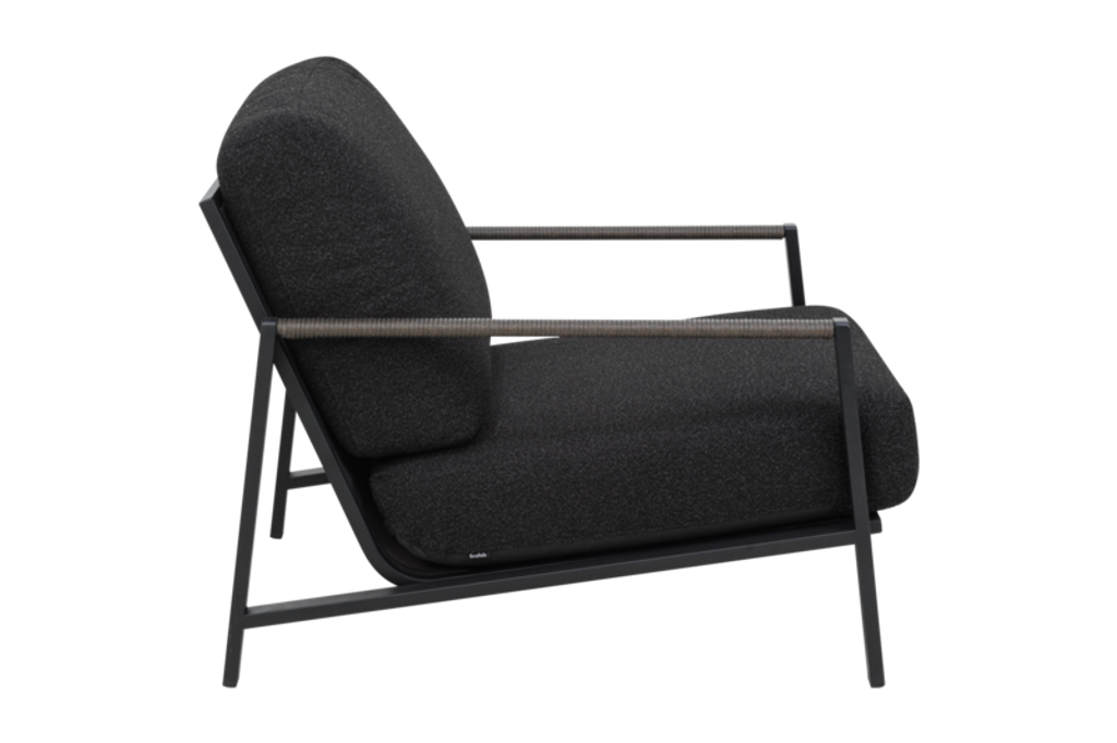 Lyra loungefåtölj från Brafab kombinerar modern elegans med hög komfort, vilket gör den till det perfekta valet för din uteplats. Den robusta stommen är tillverkad av svart pulverlackerat rostfritt stål, vilket ger både stabilitet och en stilren look. De dekorativa konstrottingdetaljerna på armstöden ger en touch av elegans.