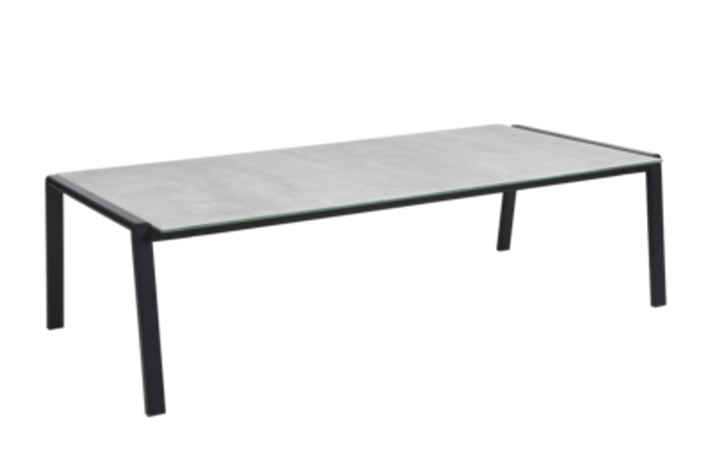 Den moderna designen matchar perfekt med andra möbler i Lyra-serien och skapar en harmonisk utomhusmiljö. Soffbordets färgtoner i grått och svart gör att det enkelt smälter in i olika inredningsstilar, samtidigt som det blir ett stilrent blickfång.