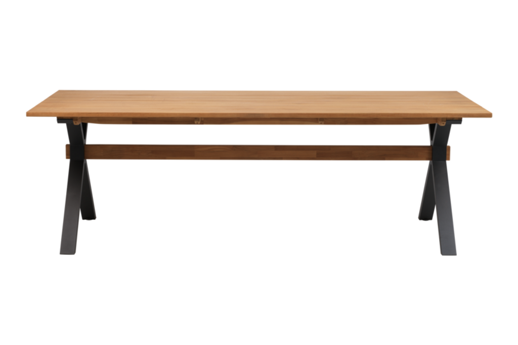 Upplev den ultimata kombinationen av stil och funktion med Brafab Mark matbord. Bordsskivan i massivt teakträ utstrålar värme och naturlig charm, medan kryssbenen i svartlackerad aluminium ger bordet en modern och industriell känsla.