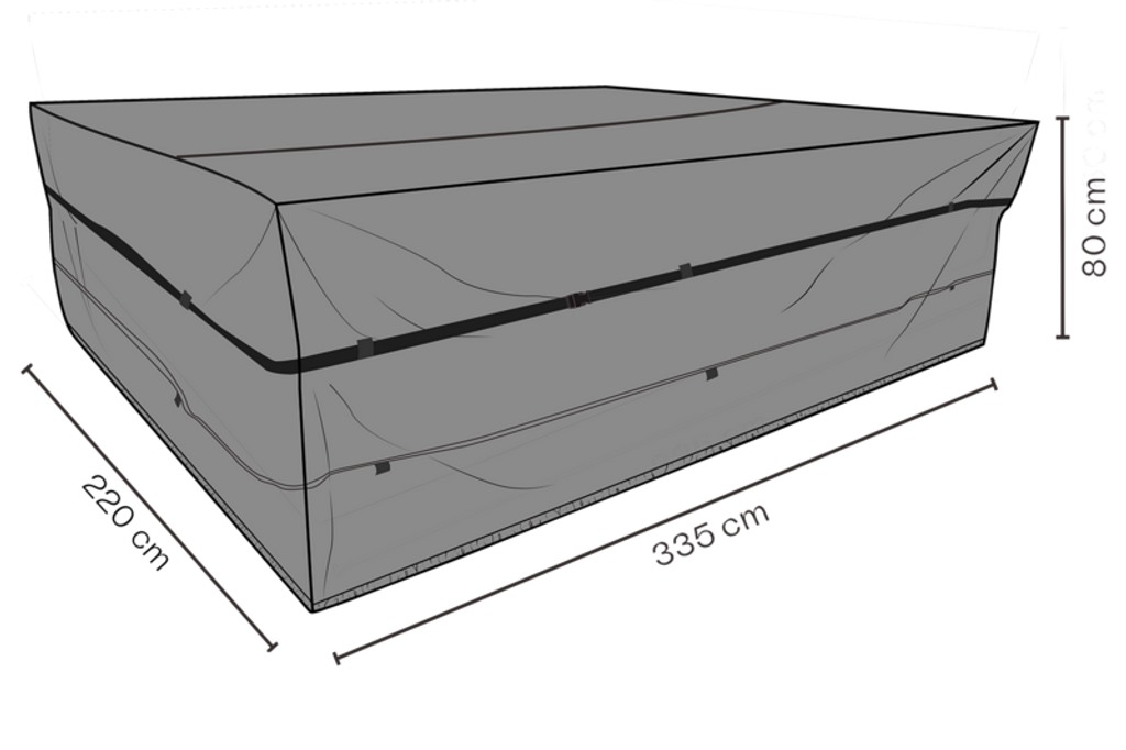 - Mått: Bredd 220 cm, Längd 335 cm, Höjd 80 cm