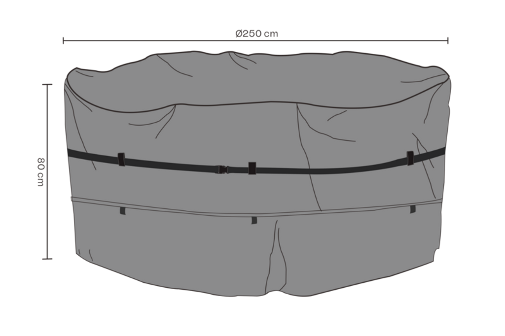 Med en diameter på 250 cm och en höjd på 80 cm passar detta möbelskydd perfekt för runda matgrupper och säkerställer att dina möbler alltid är redo för användning.