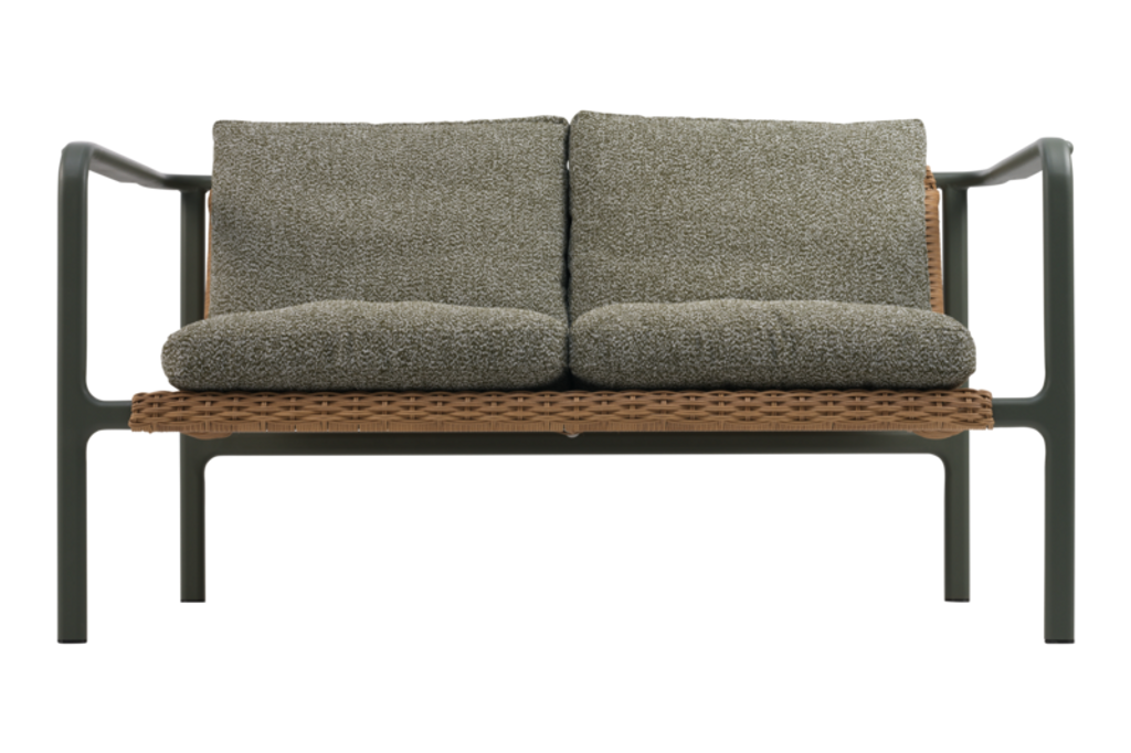 Låt Brafab Motty 2-sits soffa i Nordic green bli hjärtat av din uteplats. Med sina mjuka, avrundade linjer och harmonisk rottinginspirerad design erbjuder denna soffa en oas av avkoppling. Den pulverlackerade aluminiumramen i en sofistikerad grön nyans skapar en elegant kontrast mot de varma, mjuka Teddy-dynorna i färgen Verde.