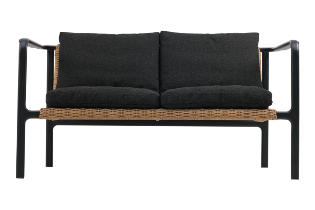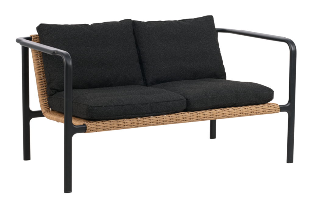 Låt Motty från Brafab bli den plats där vardagen mjukt saktar ner. Med sin eleganta rottinginspirerade design och mjuka Teddy-tyg i svart, bjuder denna 2-sits soffa in till avkoppling redan vid första anblicken. Den pulverlackerade ramen i svart metall är omsorgsfullt formad med behagliga övergångar mellan fogar och armstöd, vilket ger soffan ett stilrent och genomtänkt uttryck.