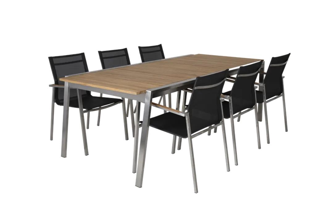 Den moderna designen med släta linjer och naturliga material gör Naos till ett utmärkt val för dig som värdesätter både stil och funktion. Teaken ger en varm, inbjudande känsla, medan det rostfria stålet tillför en modern touch.