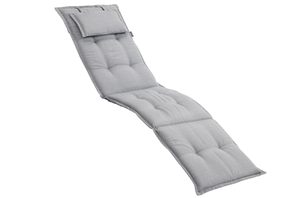 Stilfull och bekväm dyna för däckstolar, i ljusgrått bomull/polyestertyg. Perfekt för utomhusbruk.