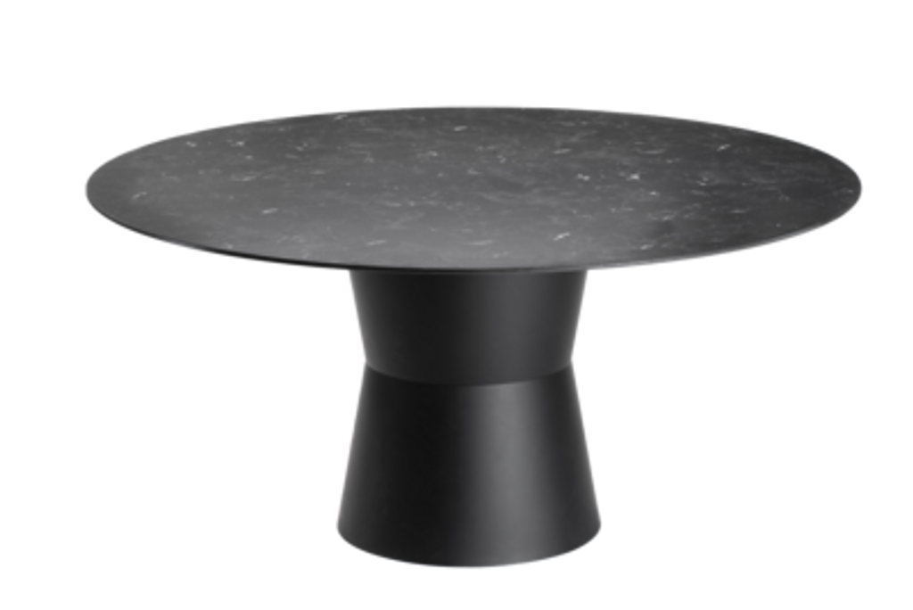 Bordet är tillverkat för att motstå utomhusbrukets påfrestningar, med en robust konstruktion i svartplast och laminat. Den moderna designen med en slät, rund yta kombinerat med en stabil, konformad bas ger inte bara ett elegant intryck utan säkerställer också stabilitet och hållbarhet.