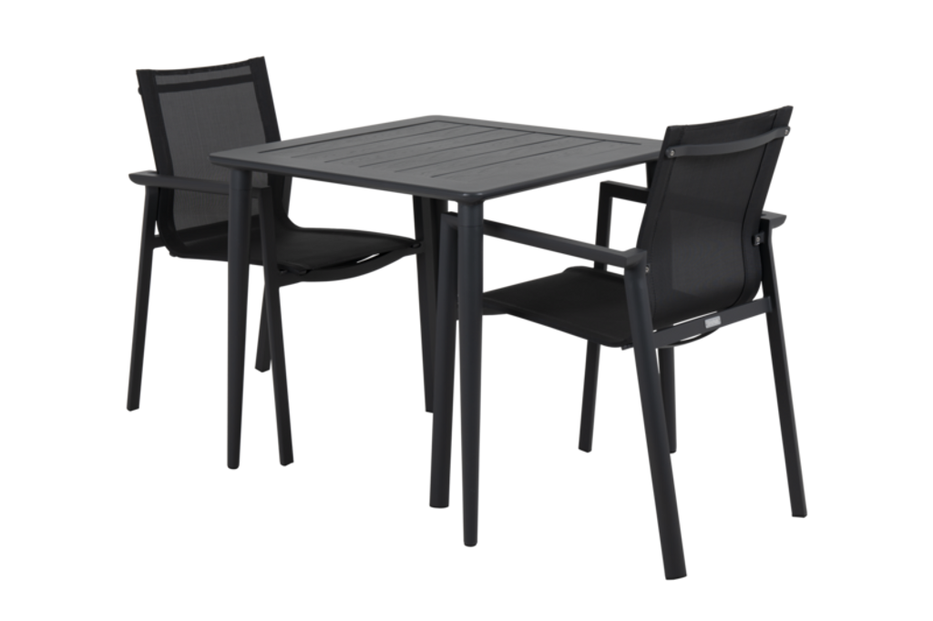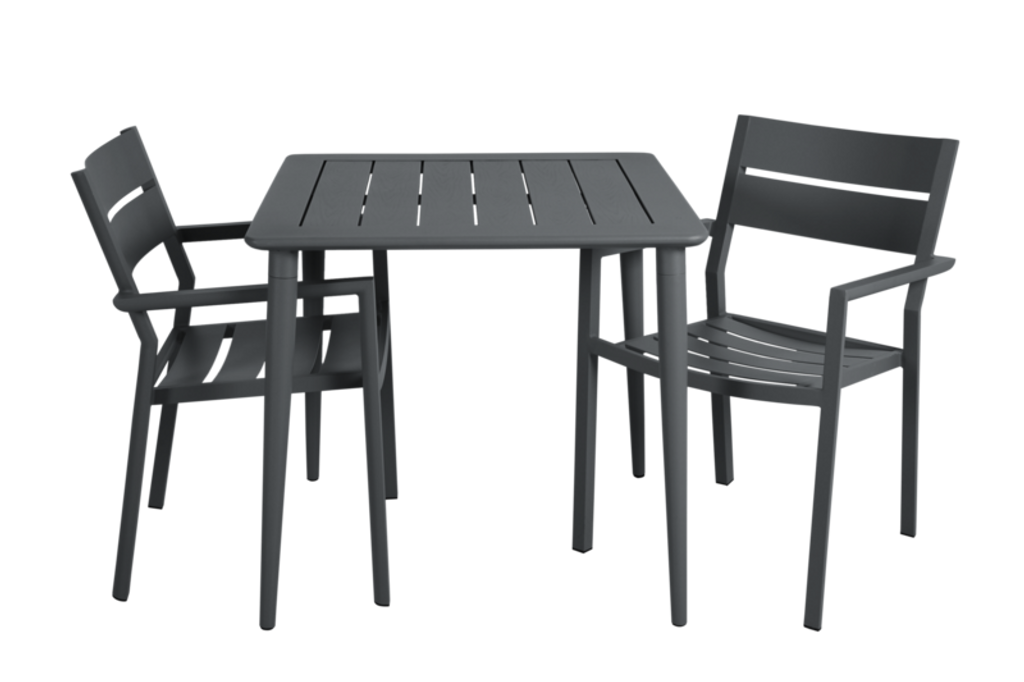 Upptäck Brafab Nimes matbord i antracit, en perfekt kombination av elegans och funktionalitet för din uteplats. Med måtten 78x78 cm är detta bord idealiskt för både små och stora utrymmen. Bordet är tillverkat av hållbar pulverlackerad aluminium, vilket ger det en robust och väderbeständig yta.