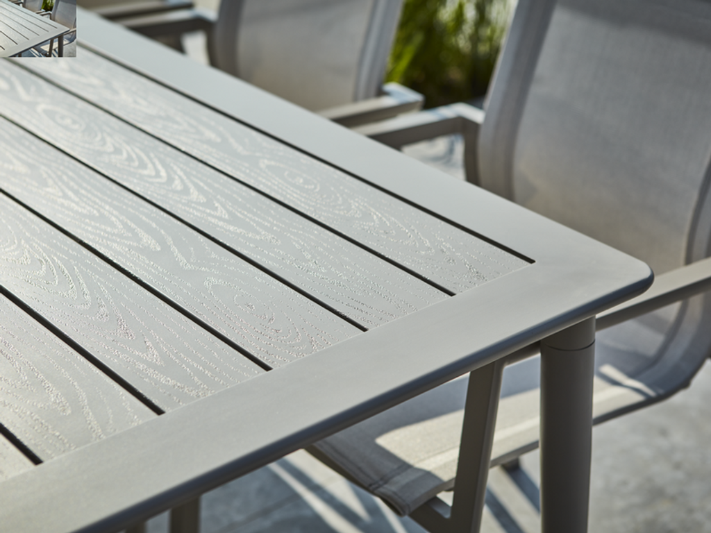 Den ljuddämpande tekniken i bordsskivan minskar skrammel, vilket ger en tystare och mer behaglig matupplevelse. Tillverkat i högkvalitativ aluminium, erbjuder det både hållbarhet och en lättviktskänsla som gör det enkelt att flytta.