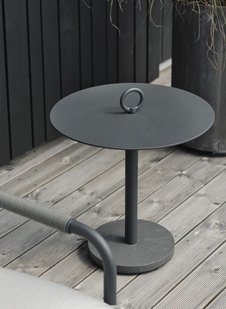 Den smidiga designen och den praktiska storleken gör det enkelt att placera bordet var som helst i ditt hem eller på din uteplats. Perfekt för att ställa en kopp kaffe eller dekorativa föremål. Den stilrena ringen på toppen ger en extra designkänsla och gör det enkelt att flytta bordet vid behov.