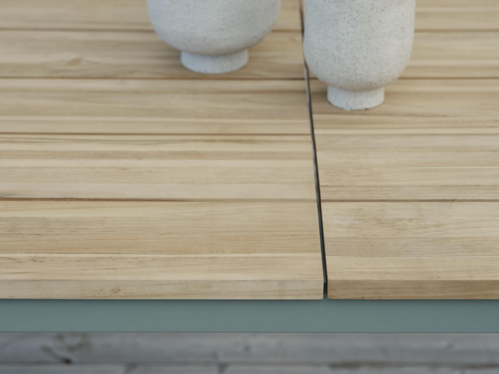 Elegant och hållbart matbord för uteplatsen, tillverkat i teak och aluminium med modern design.