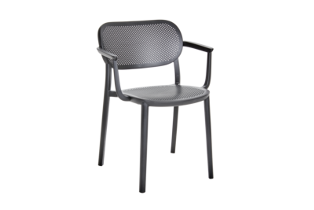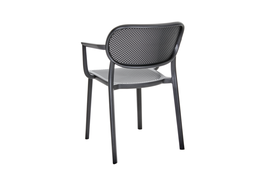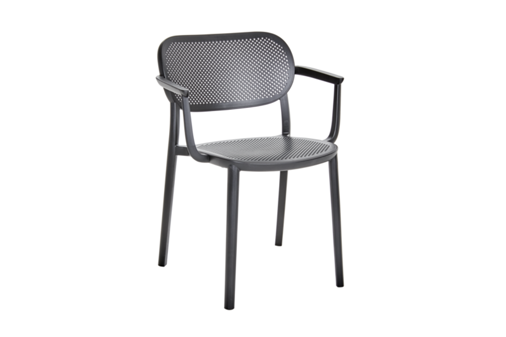 Nuta karmstol i svart plast från Brafab är stapelbar och vädertålig - perfekt för trädgården.
