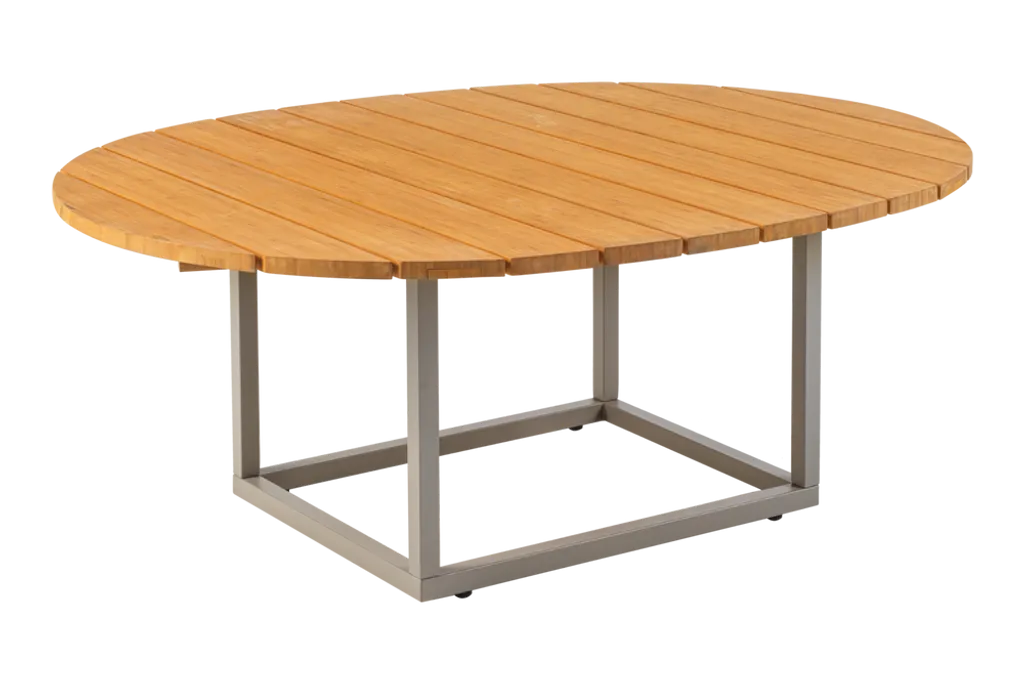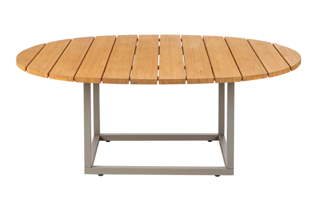 Olive soffbord från Brafab är designat för att föra naturens mjuka former in i ditt uterum. Med sin organiska siluett inspirerad av olivens tidlösa form, blir det en harmonisk mittpunkt i din loungemiljö. Bordet har en robust aluminiumstomme i en stilfull khaki-färg som komplementerar den eleganta bambutoppen. Detta ger bordet både en modern lätthet och en stabil känsla.