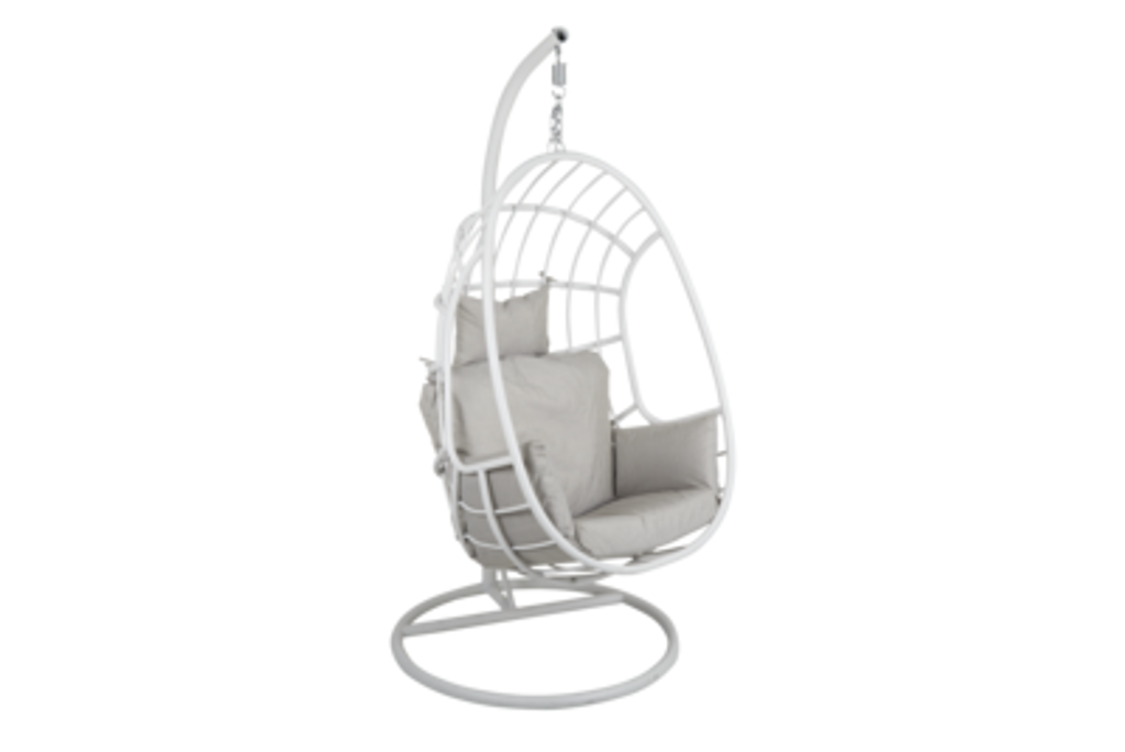 Avkopplande hänggunga med mjuka dynor och robust ställning, perfekt för lata dagar.