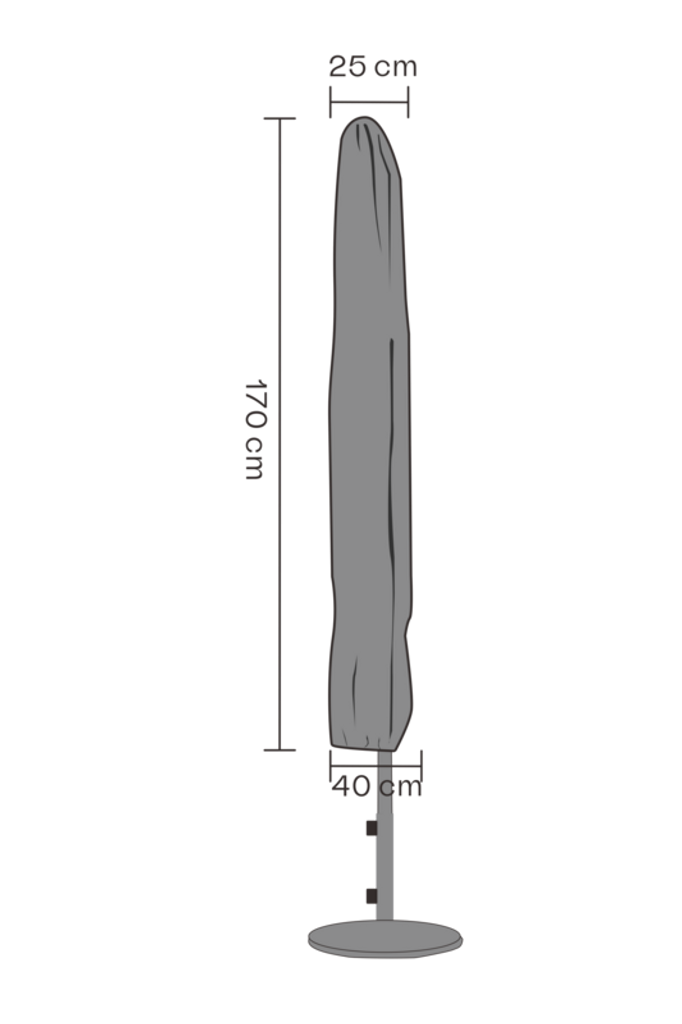Skydda dina utemöbler effektivt med detta Brafab Parasollskydd, designat för att ge ditt parasoll långvarigt skydd. Med en höjd på 170 cm och bredd på 25 cm, är detta skydd perfekt för de flesta standardparasoller. Det vattentäta materialet skyddar mot både regn och smuts, vilket förlänger livslängden på dina utemöbler.