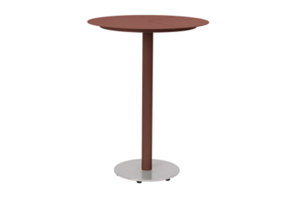 Stilrent rött barbord i aluminium med modern design och tålig konstruktion, perfekt för sociala miljöer.
