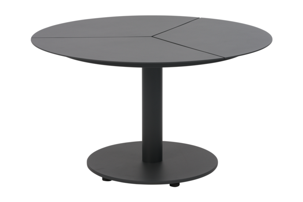Bordet är designat med en stabil mittpelare som säkerställer balans och hållfasthet, vilket gör det idealiskt för både inomhus- och utomhusbruk. Bordet finns i två höjder och kan enkelt kombineras för att skapa en dynamisk bordsyta.