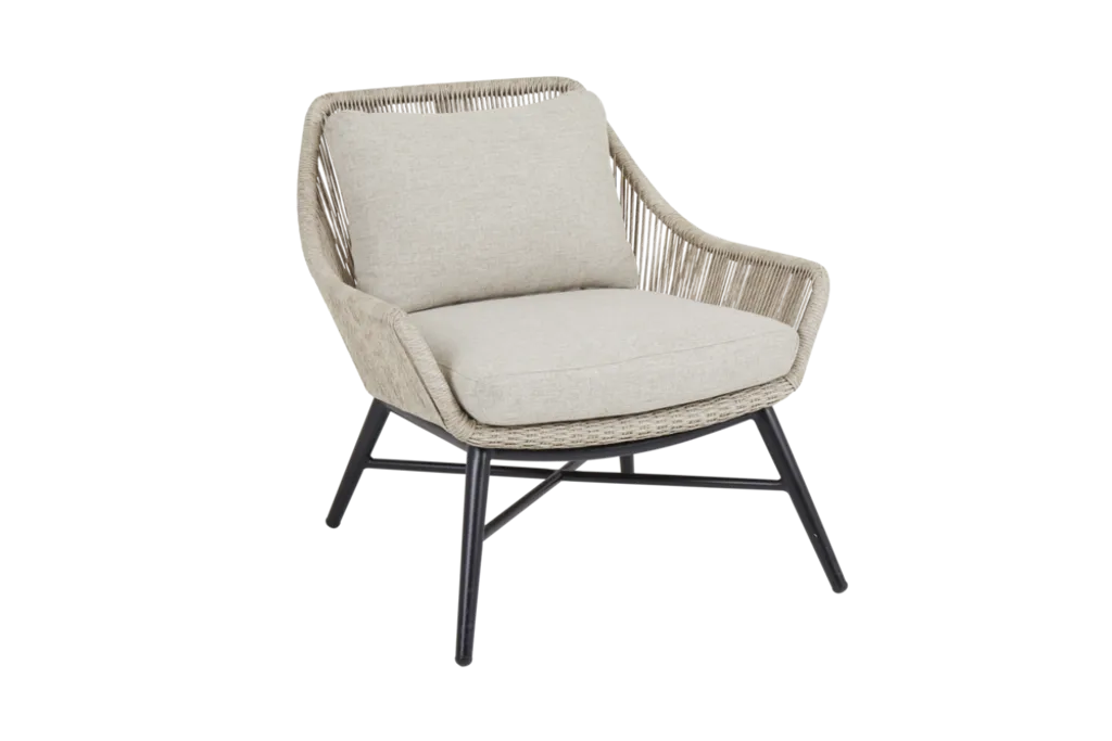 Pembroke fåtölj från Brafab erbjuder ultimat komfort med twistad konstrotting och stabil aluminiumstomme.