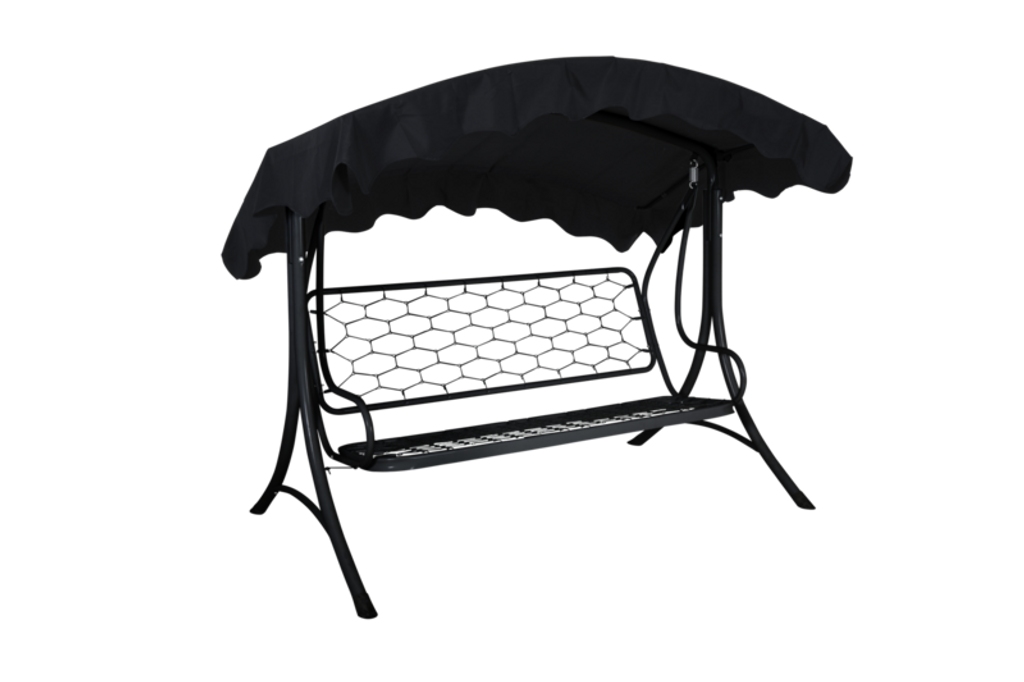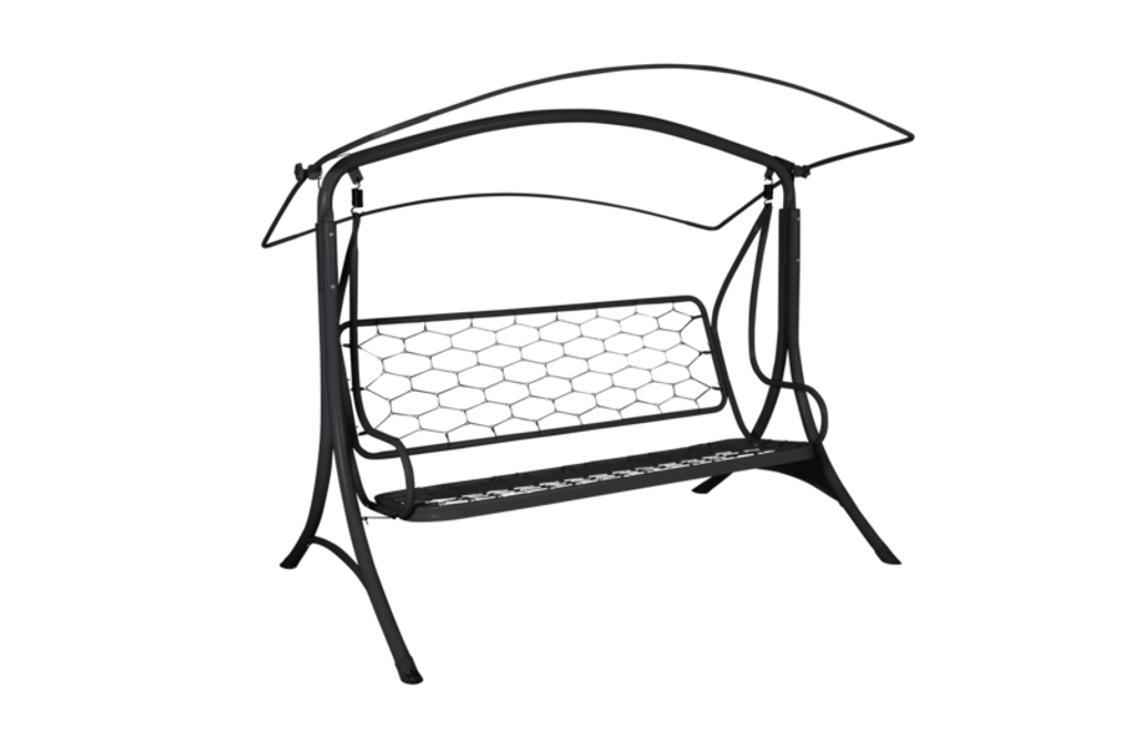 Elegant svart hammock från Brafab i hållbart, elförzinkat stål. Perfekt för trädgården.