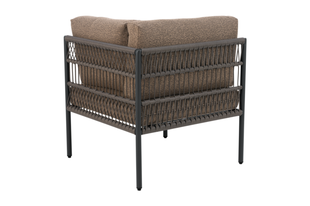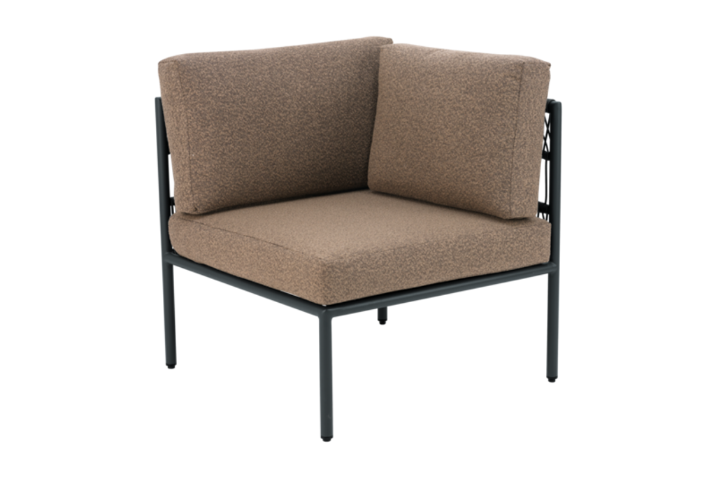 Upplev den perfekta kombinationen av stil och komfort med Brafab Reno hörndel i svart och Raw Peanut. Denna modulära möbel är designad för att harmonisera med din uteplats genom att knyta samman loungeområdet både visuellt och praktiskt.