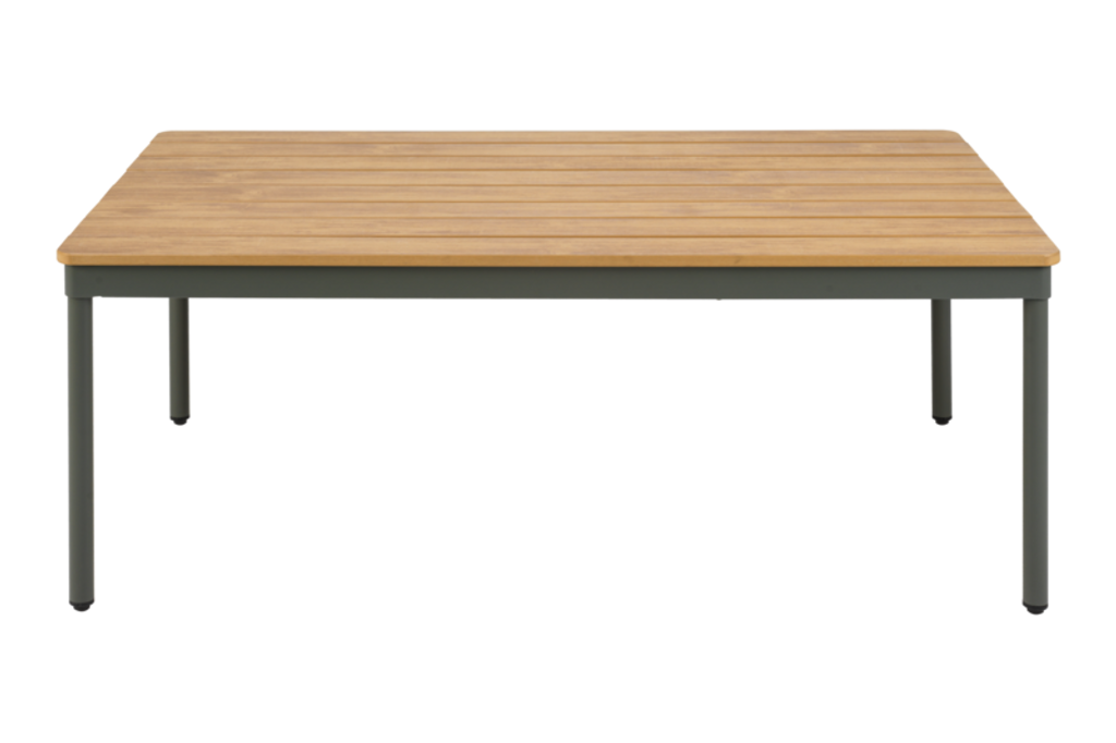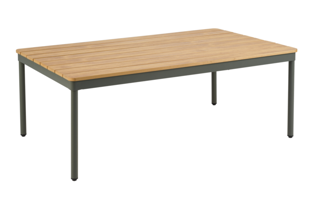 Soffbordet mäter 70x110 cm och har en höjd på 48 cm, vilket gör det idealiskt för både inomhus- och utomhusbruk. Den nordiska gröna färgen på ramen kompletterar den naturliga trätonen på bordsskivan, vilket skapar en harmonisk och inbjudande atmosfär på din uteplats.