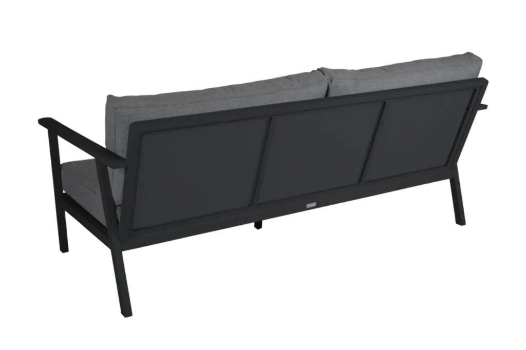 Elegant och bekväm soffa i modern design med antracit och grå nyanser, perfekt för alla utomhusmiljöer.