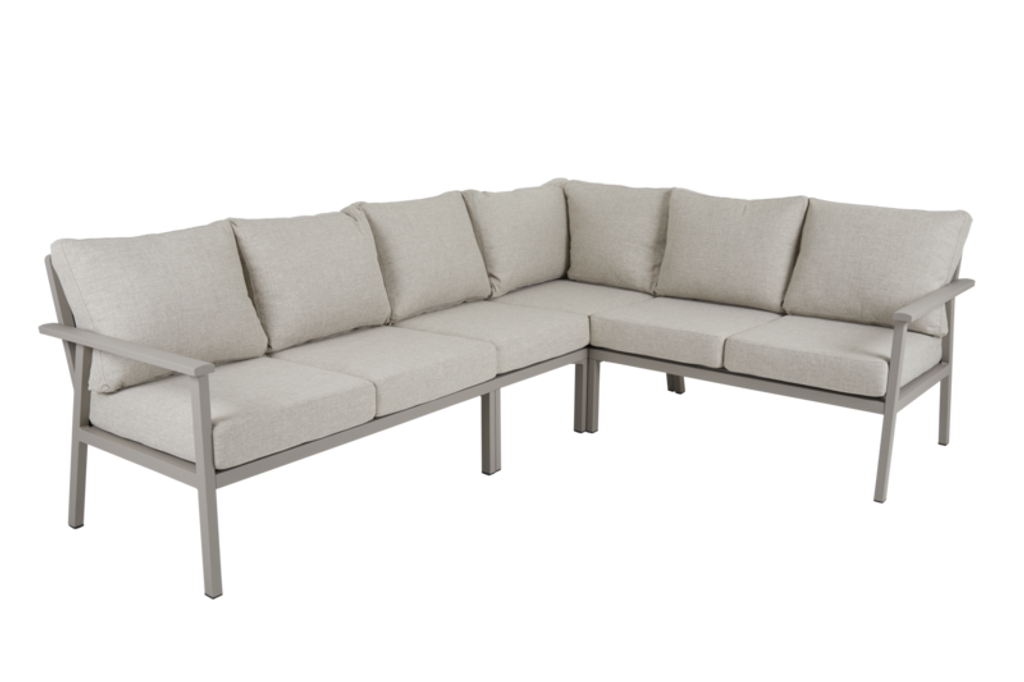 Utforska den eleganta och flexibla Brafab Samvaro avslut vänster och höger i en modern khaki nyans. Denna sofistikerade möbelgrupp kombinerar klassisk stil med modern funktionalitet, vilket gör den idealisk för alla utomhusmiljöer. Designen med rundade kanter ger inte bara ett inbjudande intryck utan också ökad komfort.