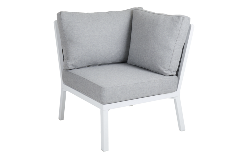 Utforska elegansen med Brafab Samvaro Hörndel i stilfulla nyanser av vit och grå. Denna hörndel kombinerar en rundad stil med modern komfort, vilket ger en inbjudande atmosfär till din utomhusmiljö. Samvaro-serien erbjuder flexibla kombinationsmöjligheter med sin byggbara soffgrupp och andra möbelalternativ.